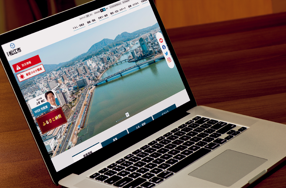 2023年2月に、松江市のホームページを刷新して、出産・転入などライフイベントごとに必要な手続きをお知らせする「手続きナビ」など便利な機能を導入しました。2024年1月には、市公式LINEもオープンしています。X(旧Twitter)のフォロワー数は、市長就任時の1,500件から現在8,000件へと増加しています。